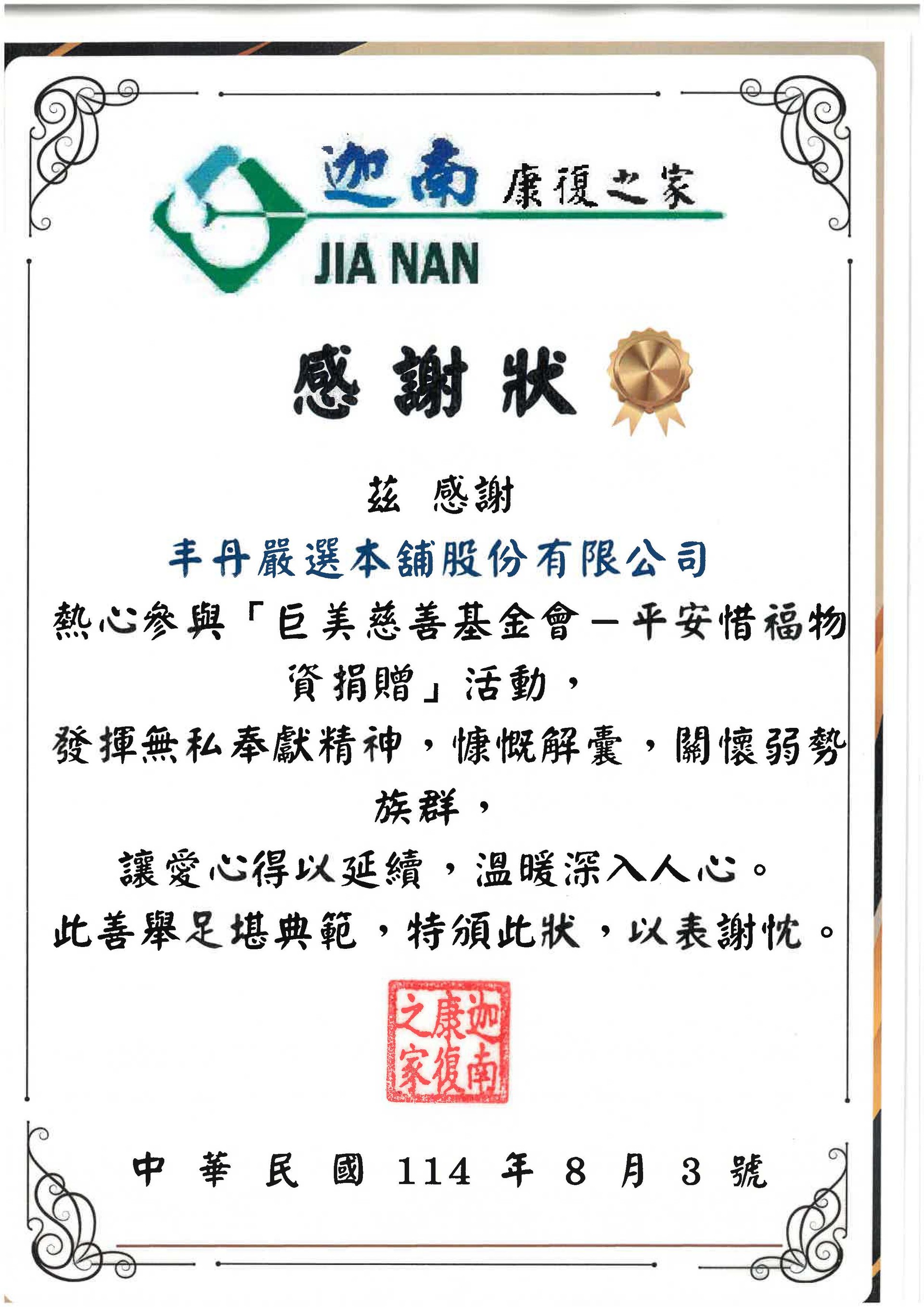 2025丰丹參與平安惜福物資捐贈活動 迦南康復之家