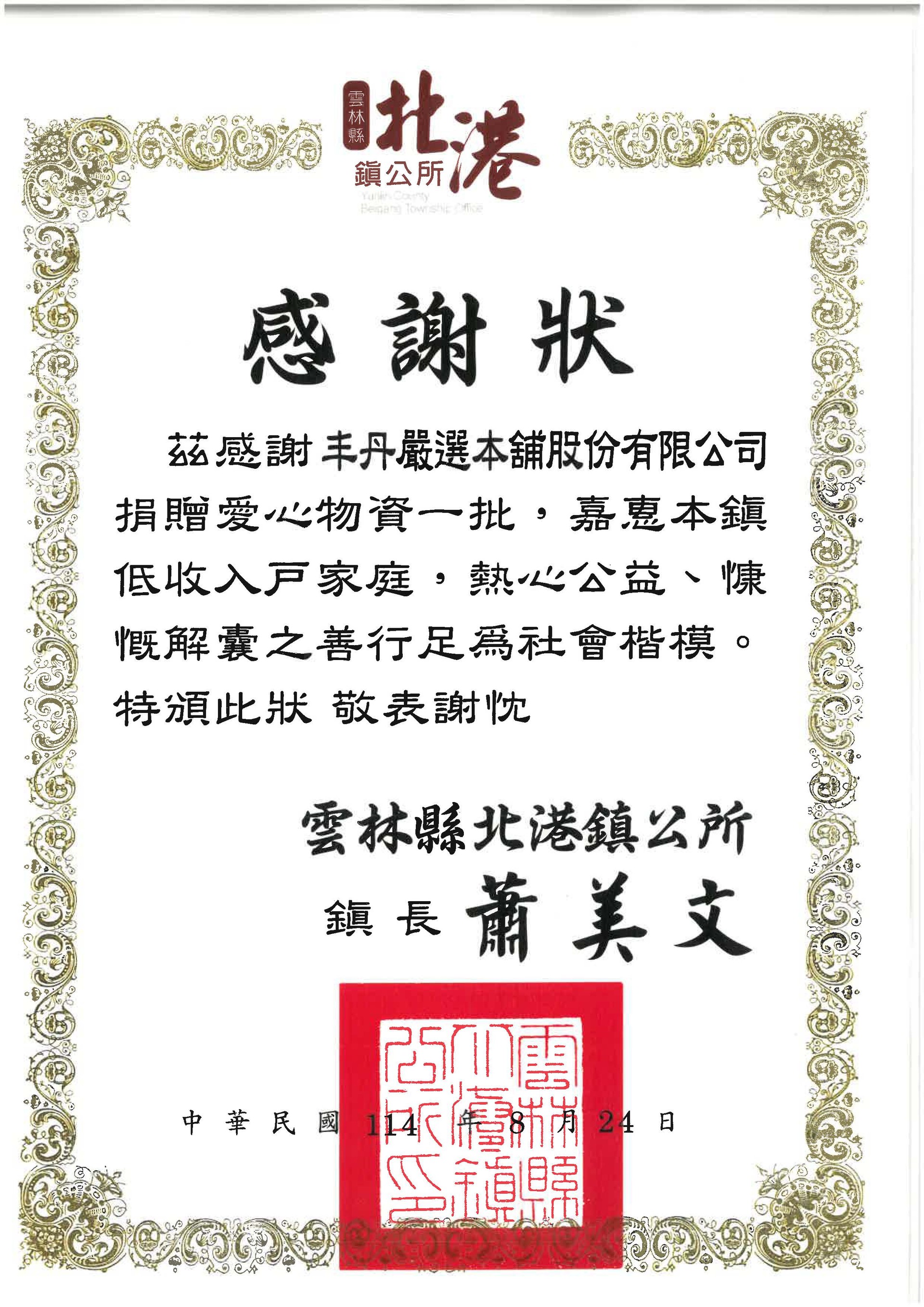 2025丰丹捐贈愛心物資 雲林縣北港鎮低收戶家庭