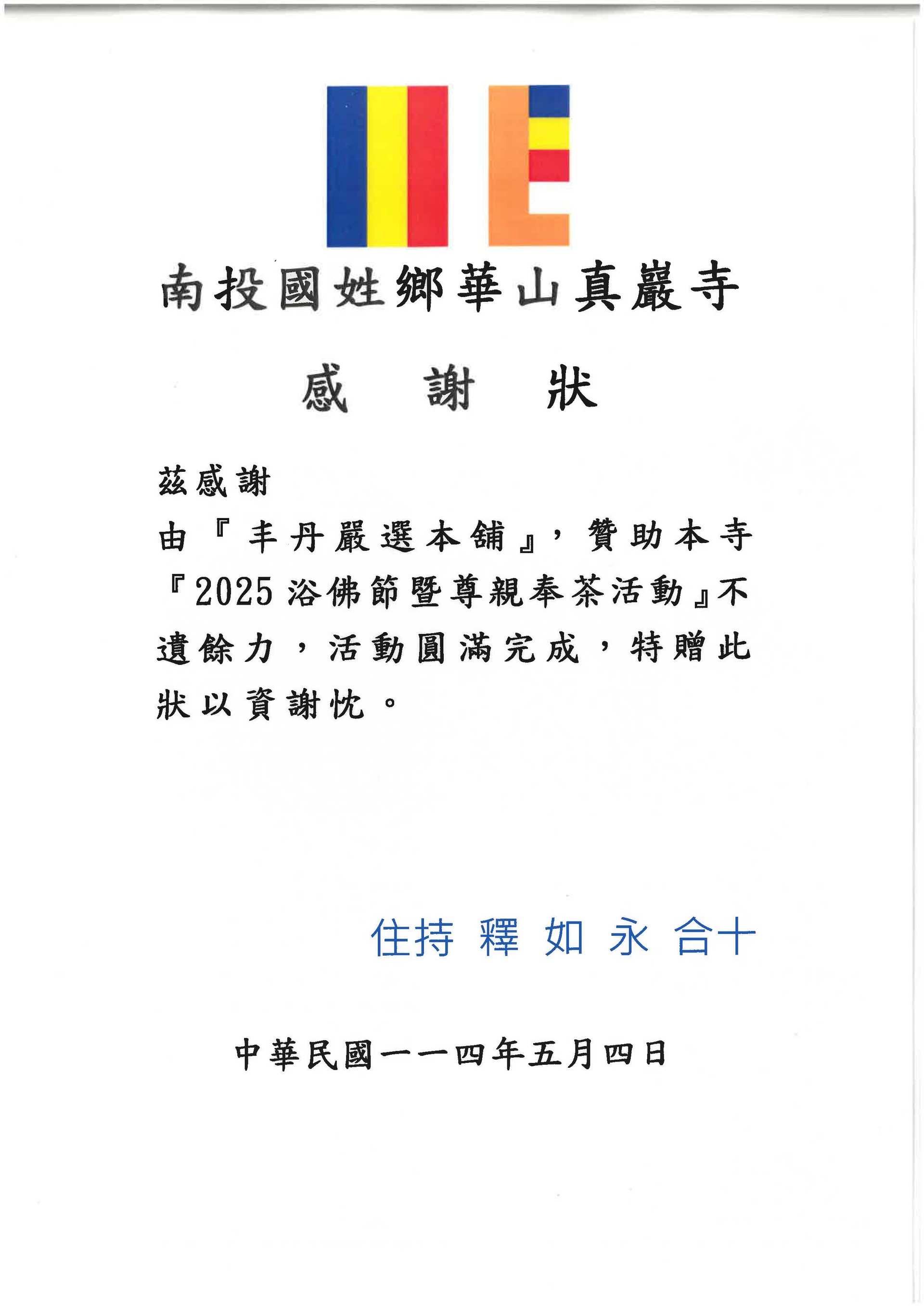 2025丰丹贊助浴佛節暨尊親奉茶活動 南投國姓鄉華山真巖寺
